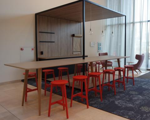 In opdracht van Cushman&Wakefield en in samenwerking met bovengenoemde bedrijven de entree/ontvangsthal van hun verzamelpand te Eindhoven opgeleverd. De opdracht was om er een ontvangstruimte van te maken dat alle huurders met hun klanten hier meer naartoe bewegen, kort te overleggen, ontvangen van klanten, een kop koffie te drinken en kort te werken. Het is een oprechte eyecatcher geworden voor dit prachtige verzamelpand Dorgelo te Eindhoven. In samenwerking met interieurontwerp bureau Two Work het ontwerp bedacht en uitgevoerd.