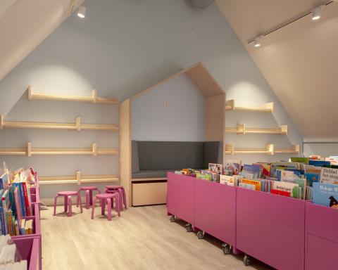 Prachtige kleurcombinaties en gebruik van verschillende materialen in het interieur maken deze bibliotheek tot een geweldige locatie voor alle Heemstedenaren.
